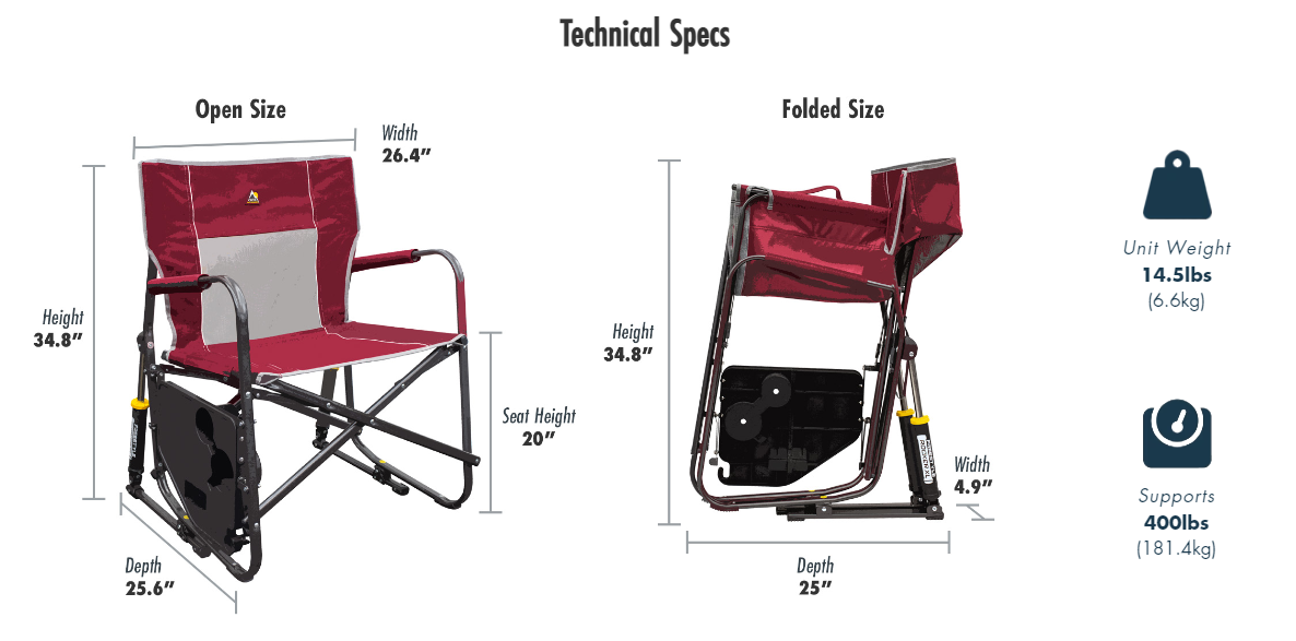 A camping rocking chair designed for the great outdoors! Easy to transport and set up, with smooth rocking on any surface, anywhere.