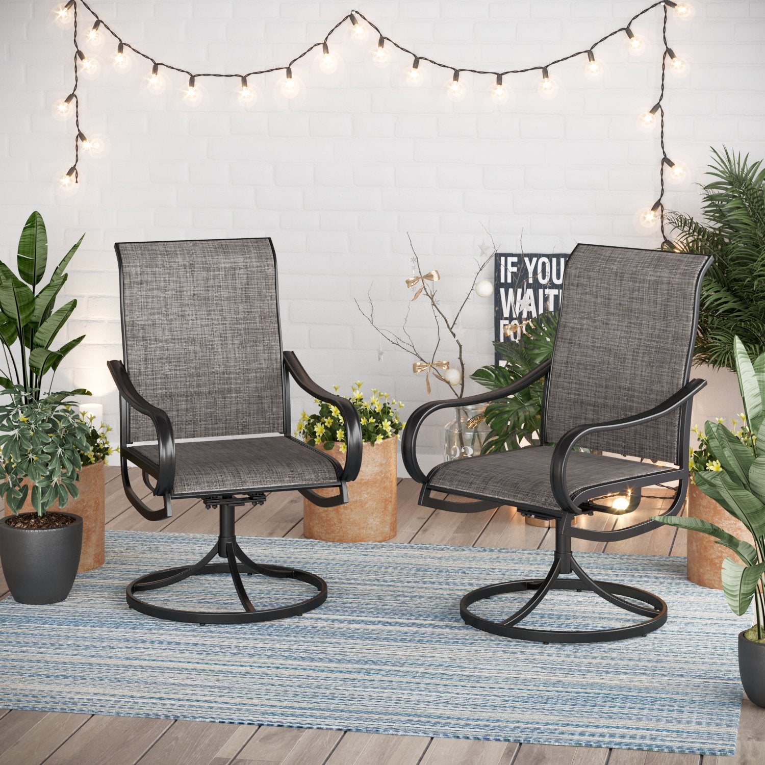 Outdoor Textilene Swivel Chairs with Black Frame 2-Piece Set