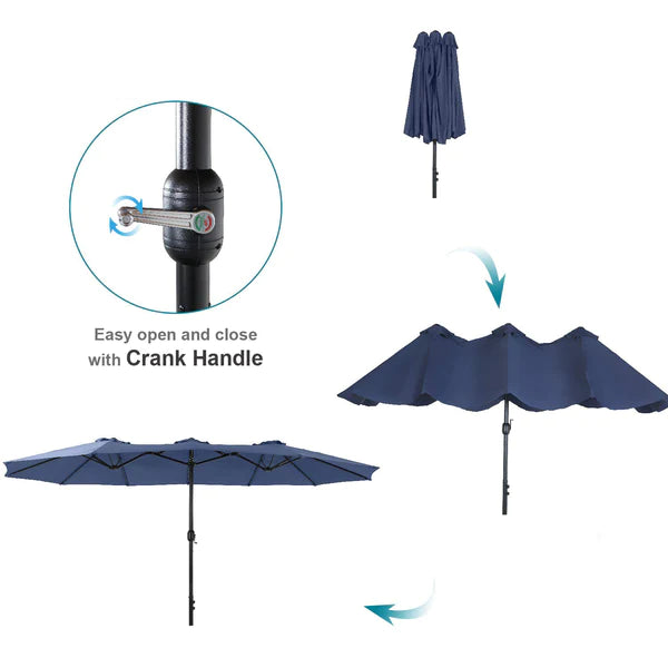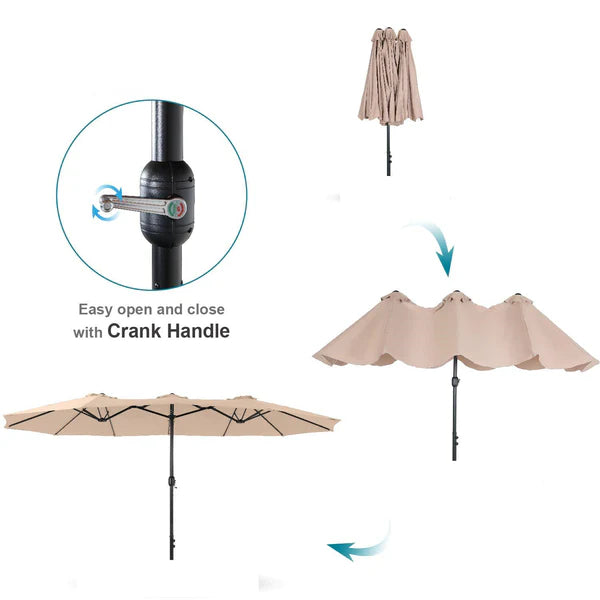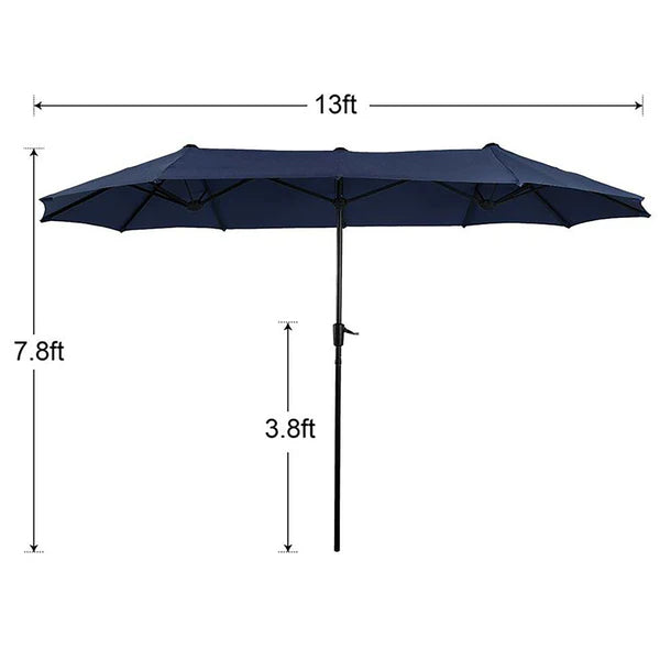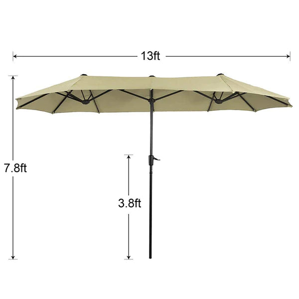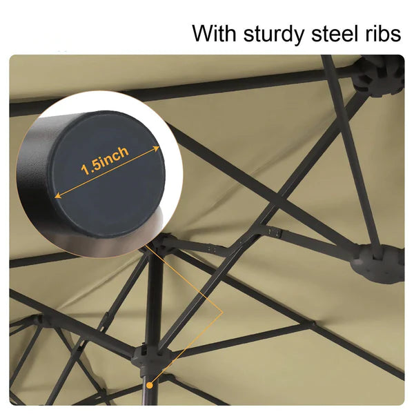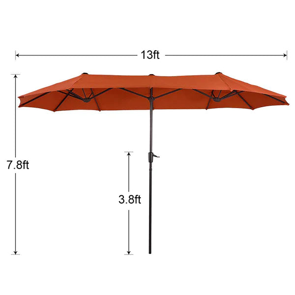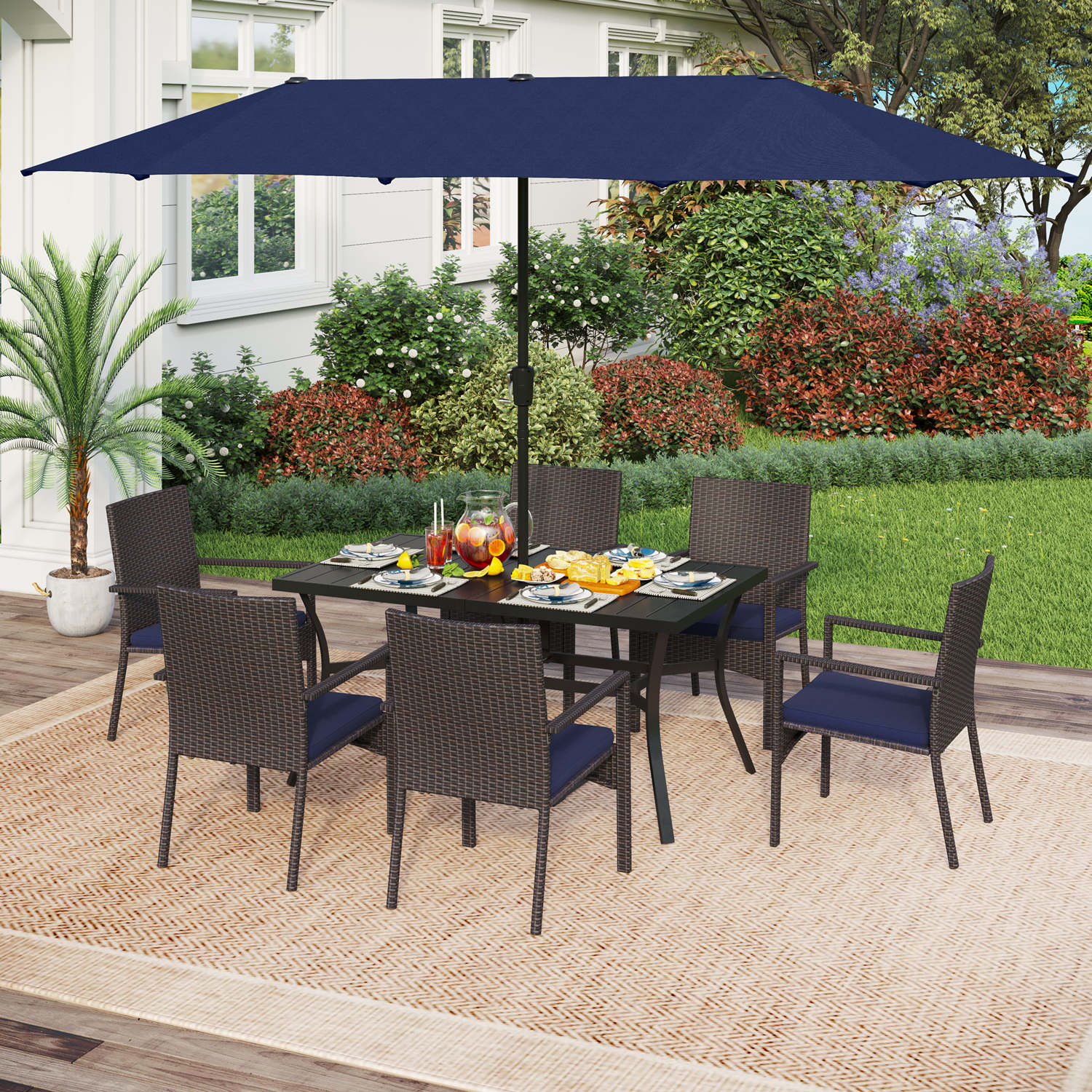 8-Piece Patio Dining Set with 13ft Umbrella & Rectangle Steel Table & Wicker Rattan Chairs