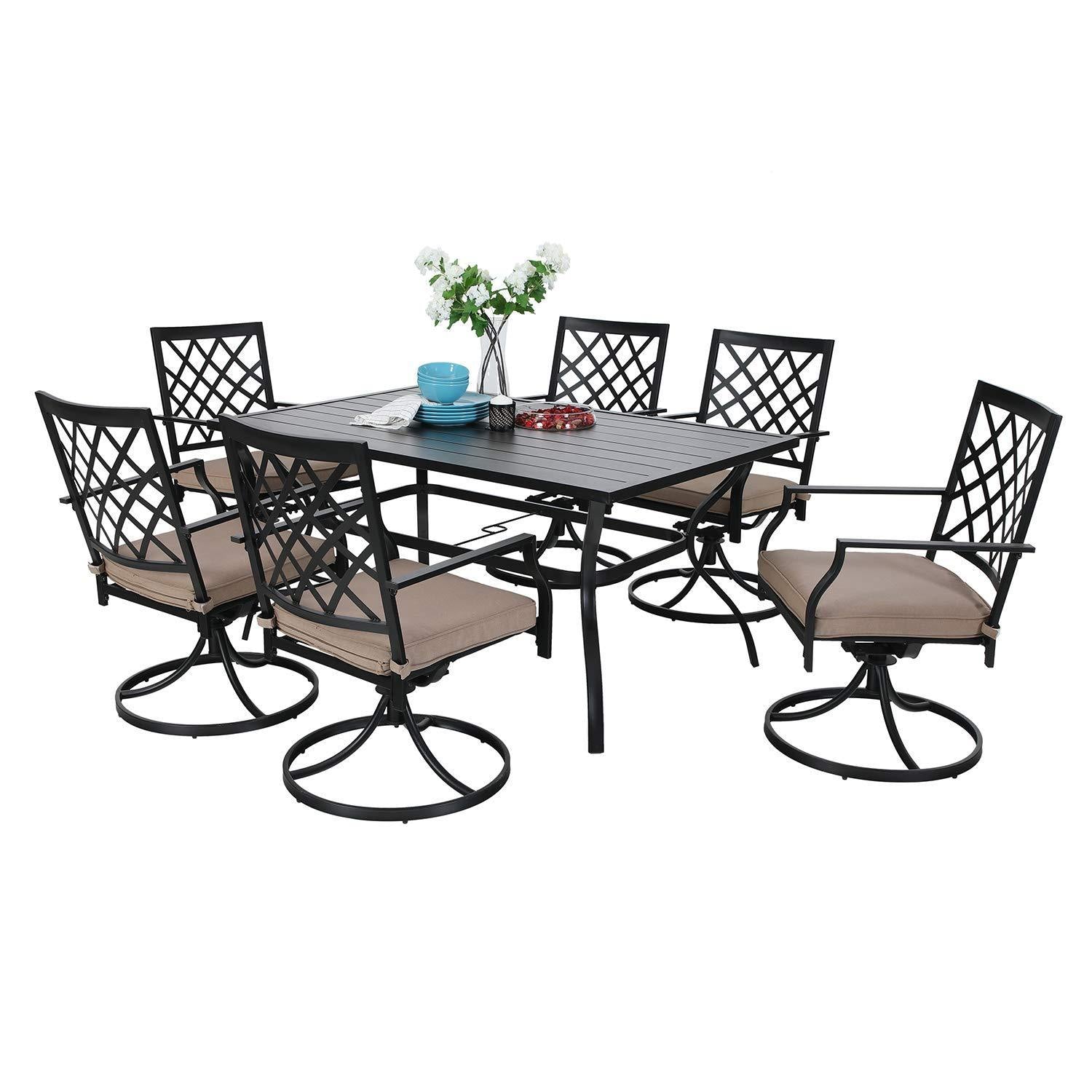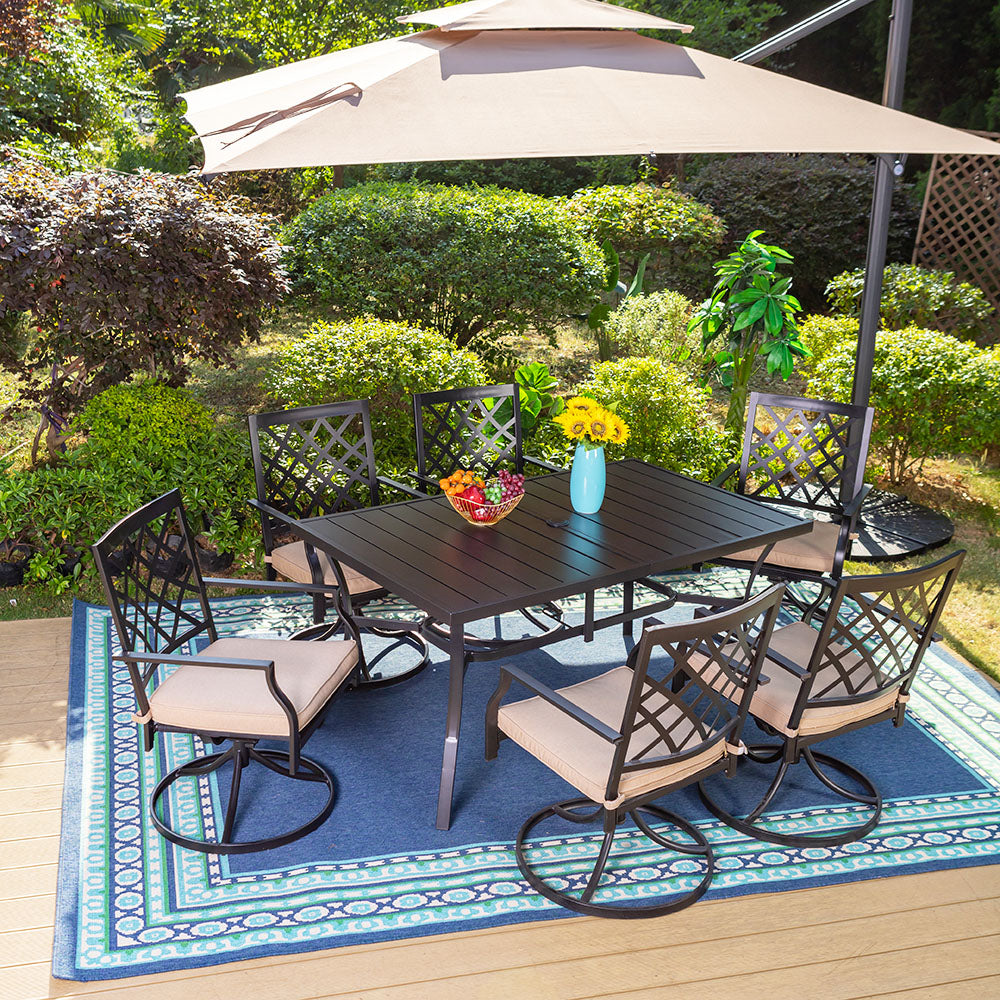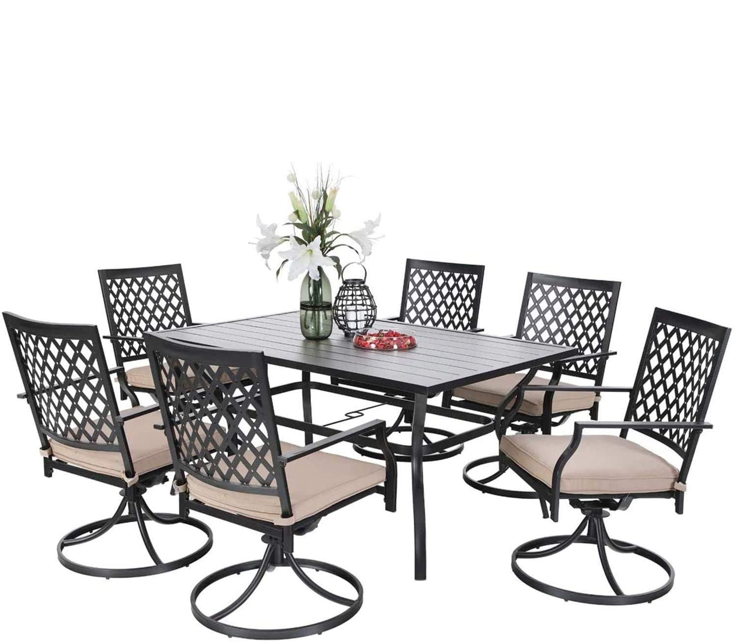 7-Piece Outdoor Patio Dining Set 6 Swivel Chairs and Rectangle Steel Table