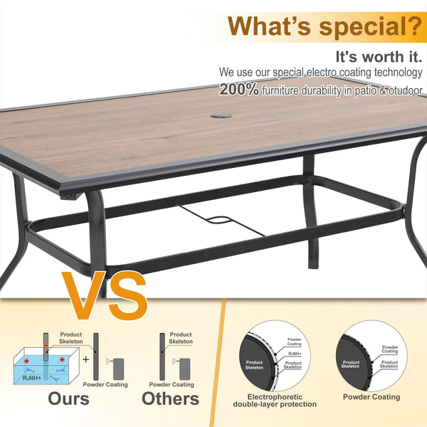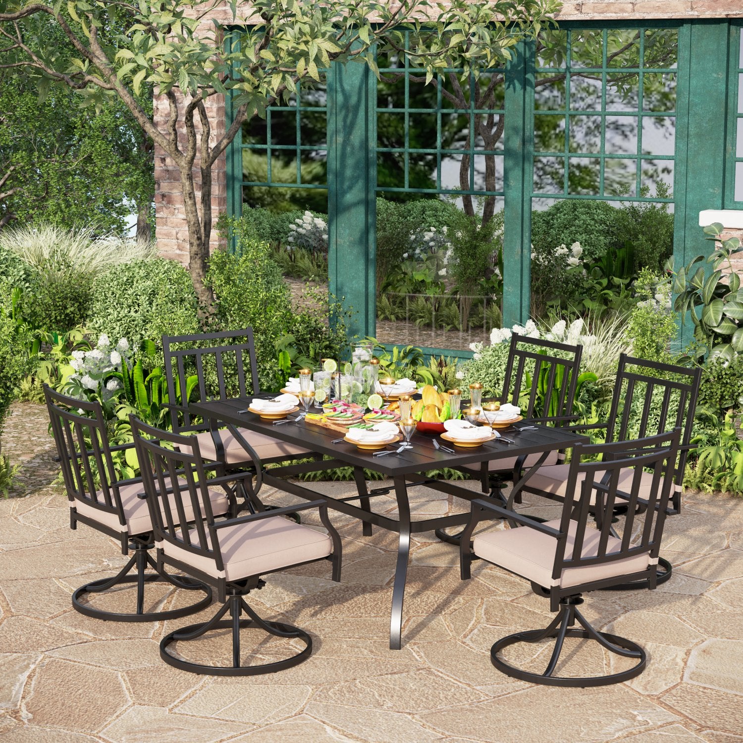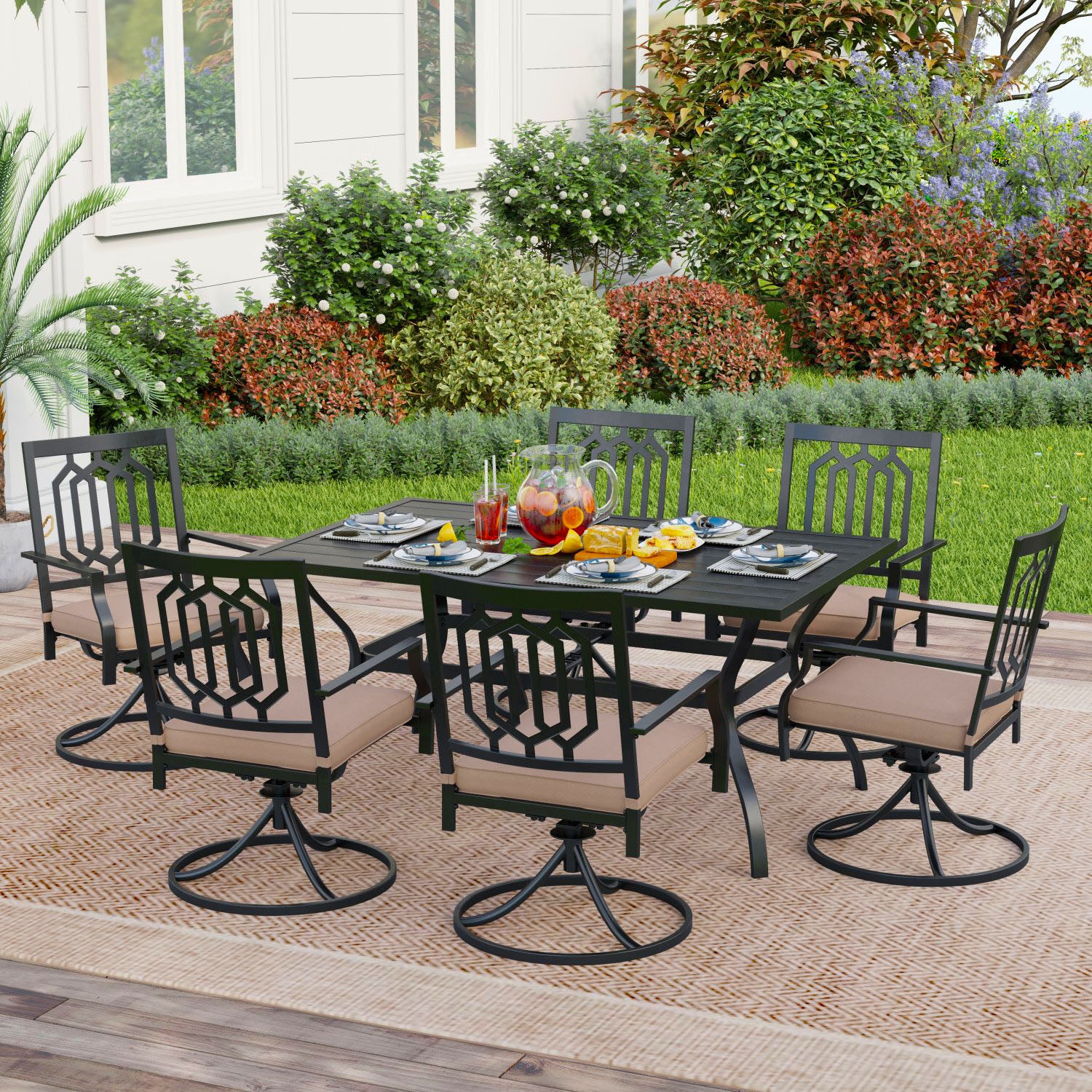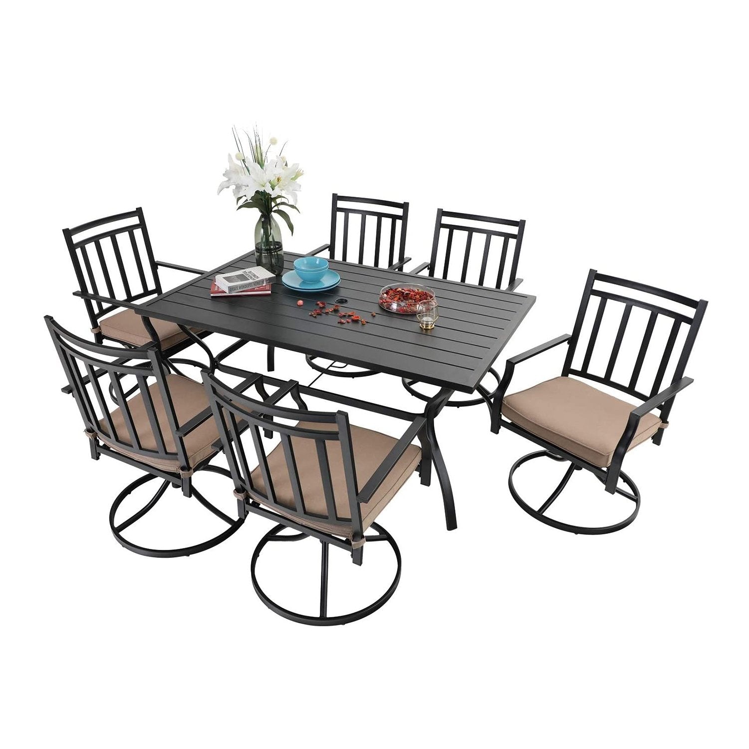 7-Piece Outdoor Patio Dining Set 6 Swivel Chairs and Rectangle Steel Table