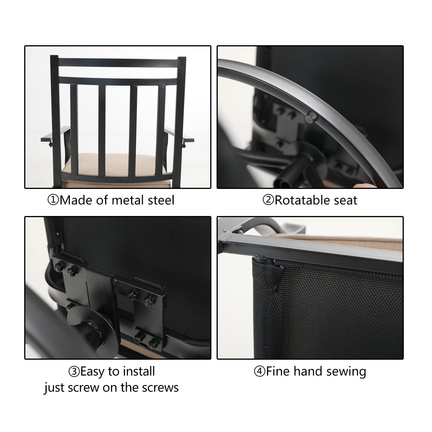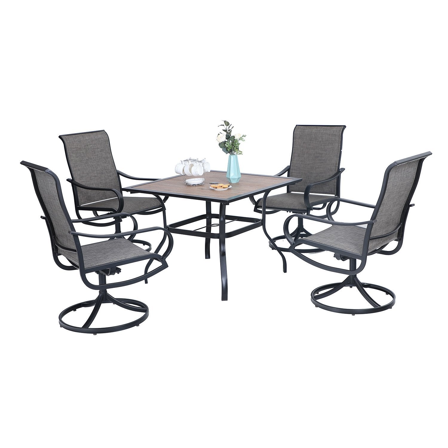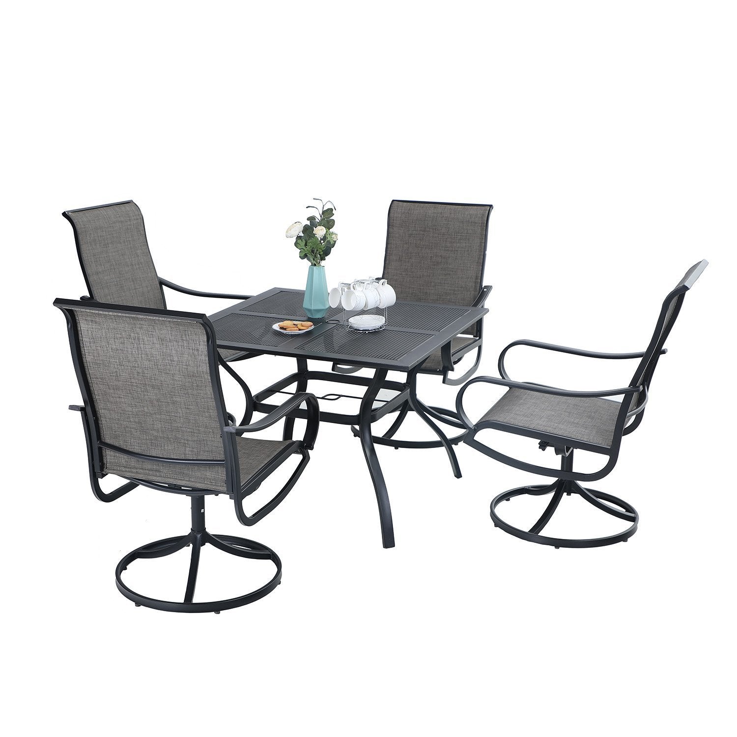 5-Piece Patio Dining Set 4 Textilene Swivel Chairs & Metal Steel Table