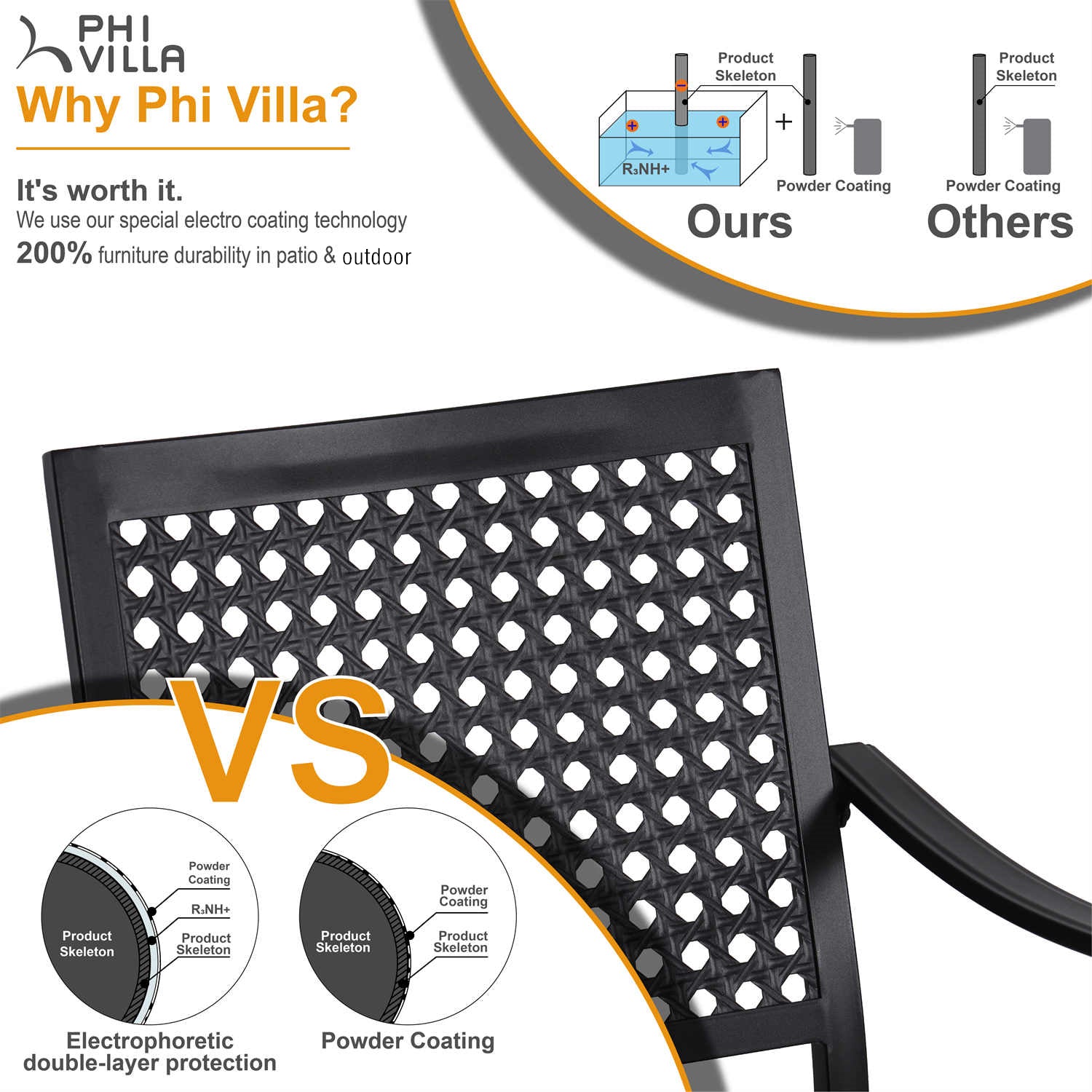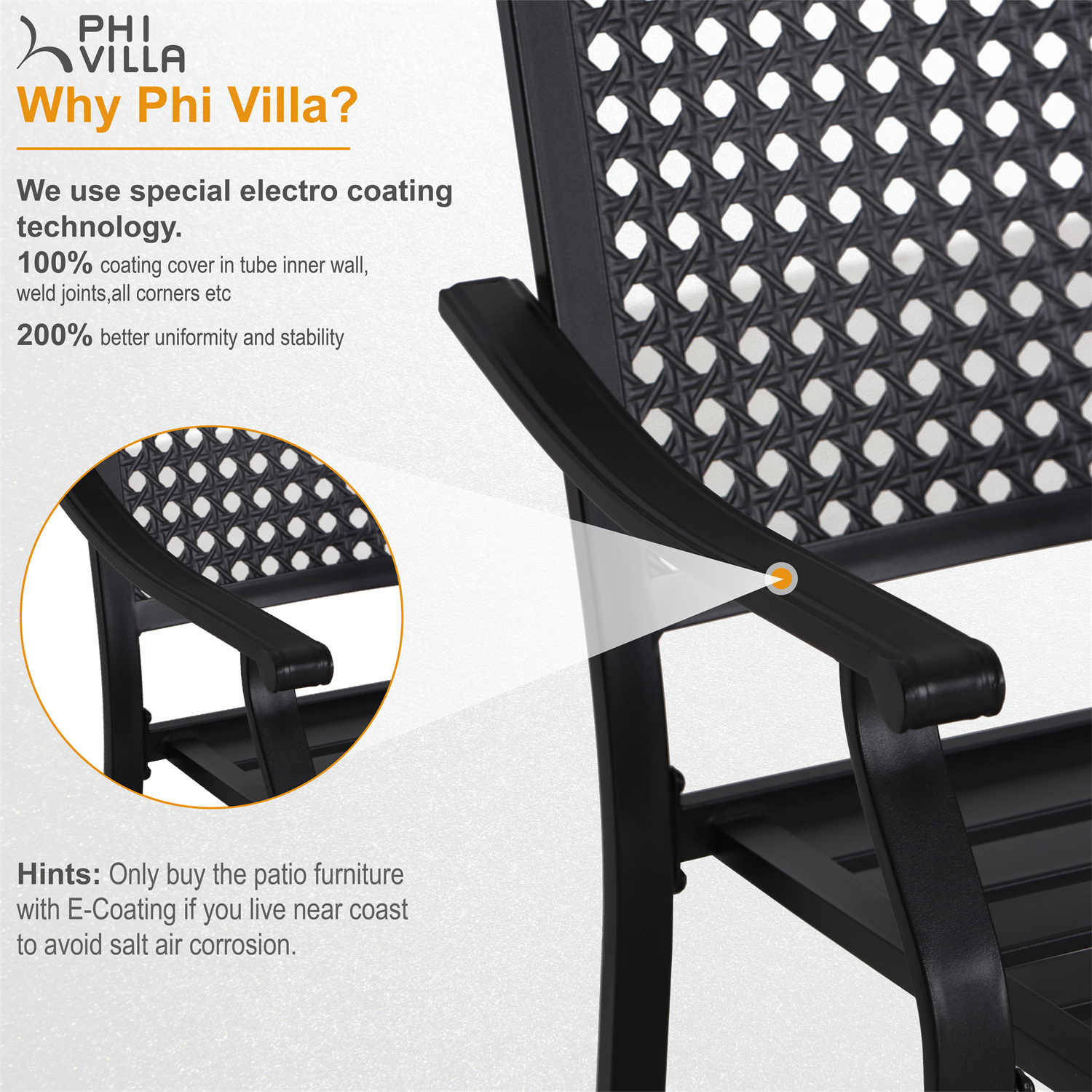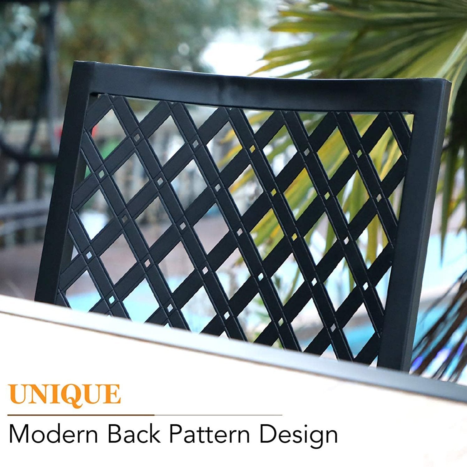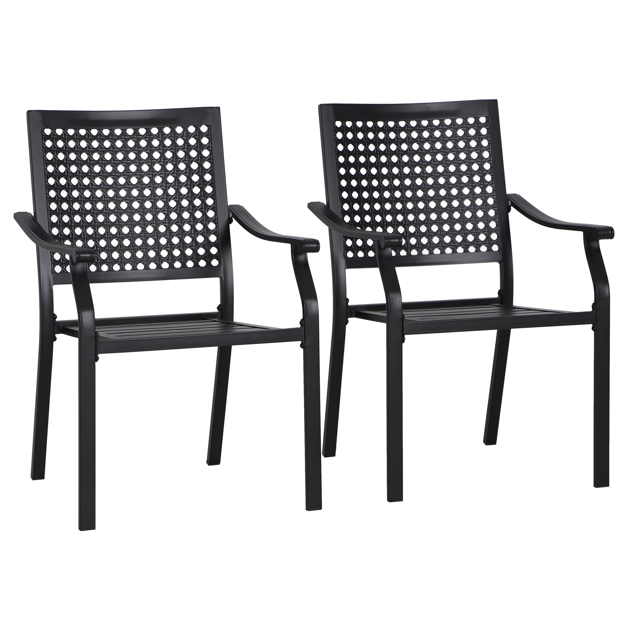 Outdoor Fixed Steel Dining Chairs with Bullseye Flower Pattern - Set of 2