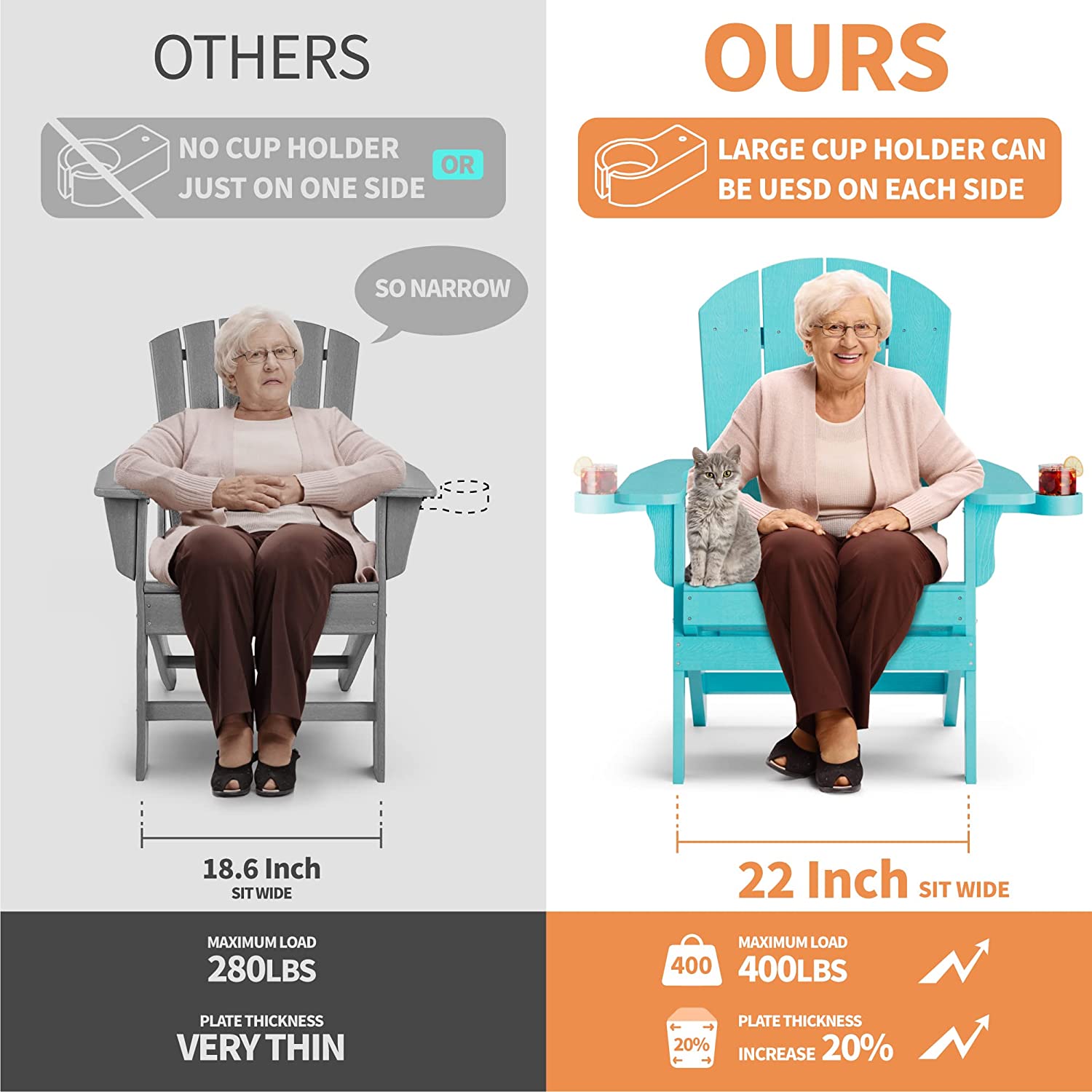 Adirondack Chair ,Patio Chairs 5 Steps Easy Installation,Widely Used in Outdoor, Fire Pit, Deck, Outside, Garden, Campfire Chairs