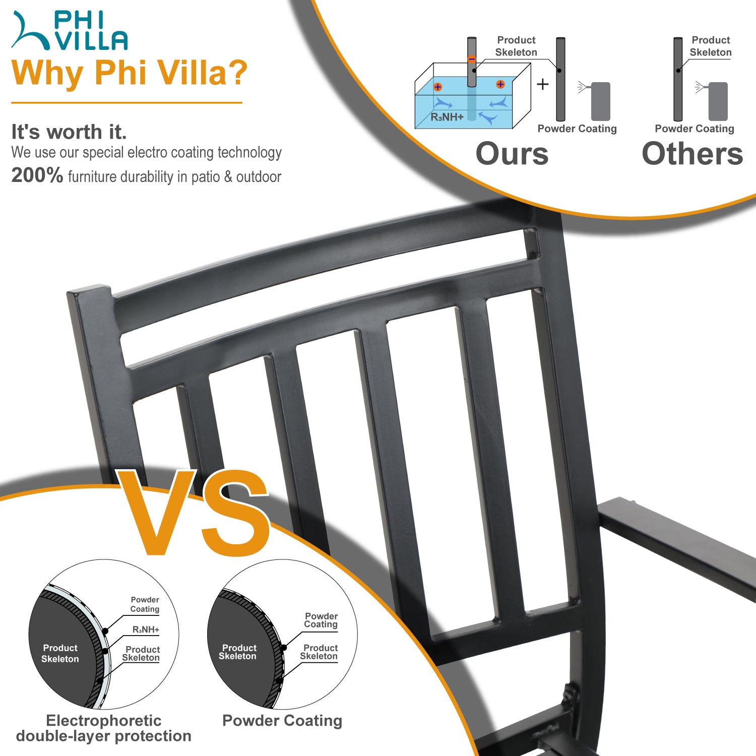 50 Inch Patio Garden & Park Bench Steel Frame Porch Chair