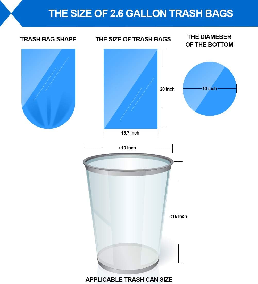 Small Trash Bag, 2.6 Gallon Garbage Bags FORID Bathroom Trash can Liners for Bedroom Home Kitchen 150 Counts 5 Color